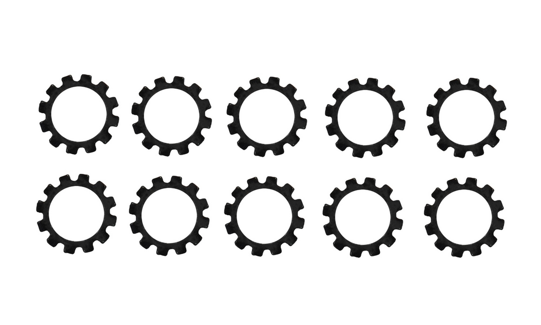 Die innenverzahnten Scheiben (Form E) krallen sich beim Anziehen der Schraube oder Mutter sowohl im Schraubenkopf bzw. der Mutter als auch im Material der Auflagefläche fest. Diese Verankerung erzeugt einen hohen Reibungswiderstand und wirkt so als zuverlässige Losdrehsicherung.